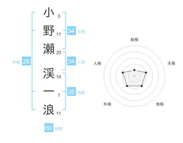 小野瀬 渓一浪さんを姓名の画数から五運を鑑定