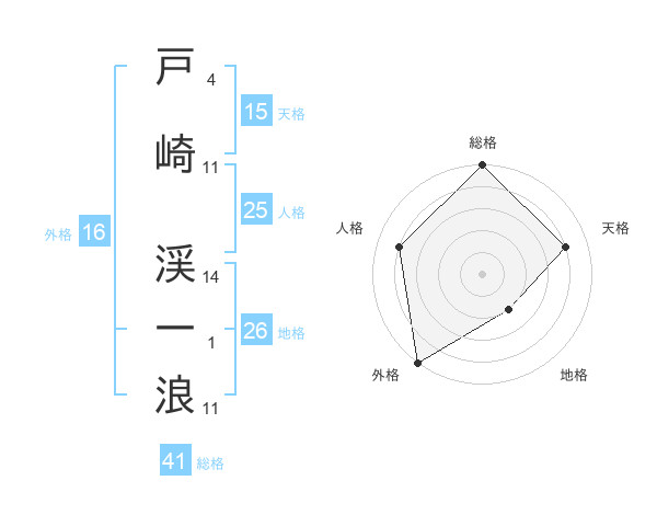 戸崎 渓一浪さんの外格は16画の5点!