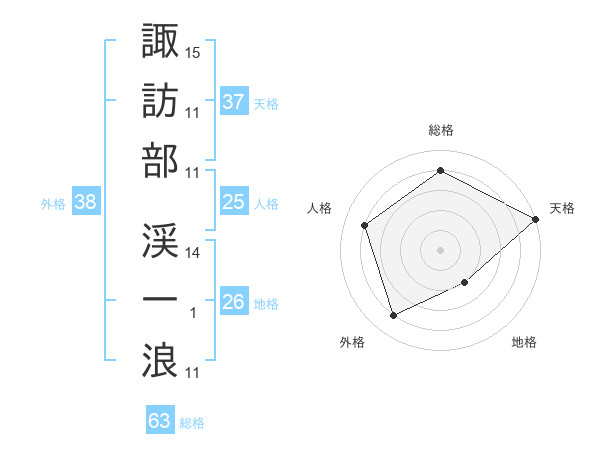 諏訪部 渓一浪さんの総格は63画の4点!
