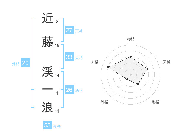近藤 渓一浪さんを姓名の画数から五運を鑑定
