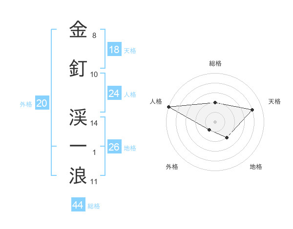 金釘 渓一浪さんを姓名の画数から五運を鑑定