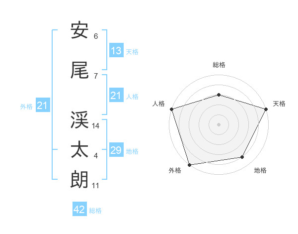 安尾 渓太朗さんを姓名の画数から五運を鑑定