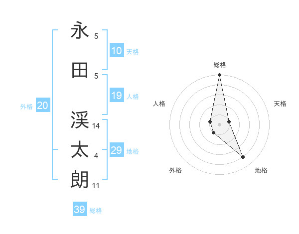 永田 渓太朗さんを姓名の画数から五運を鑑定