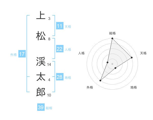 上松 渓太郎さんの総格は39画の5点!