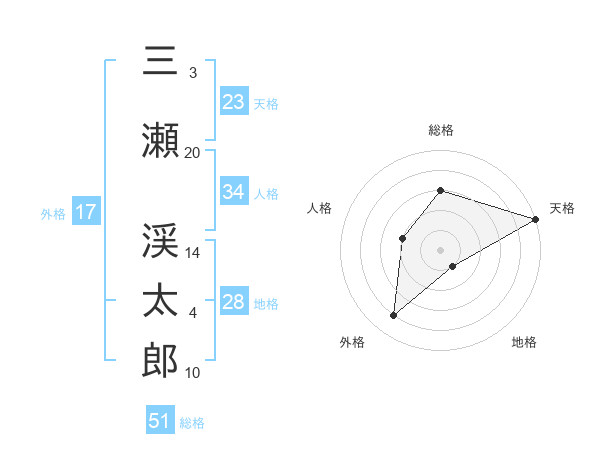 三瀬 渓太郎さんの天格は23画の5点!