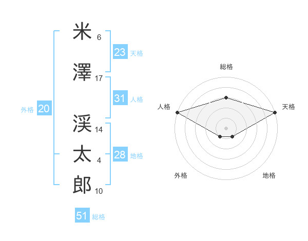 米澤 渓太郎さんの総格は51画の3点!