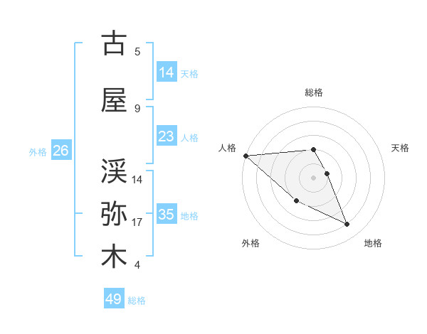 古屋 渓弥木さんを姓名の画数から五運を鑑定