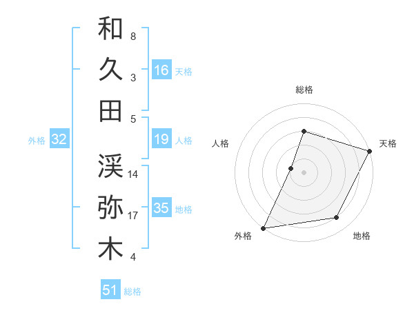 和久田 渓弥木さんを姓名の画数から五運を鑑定