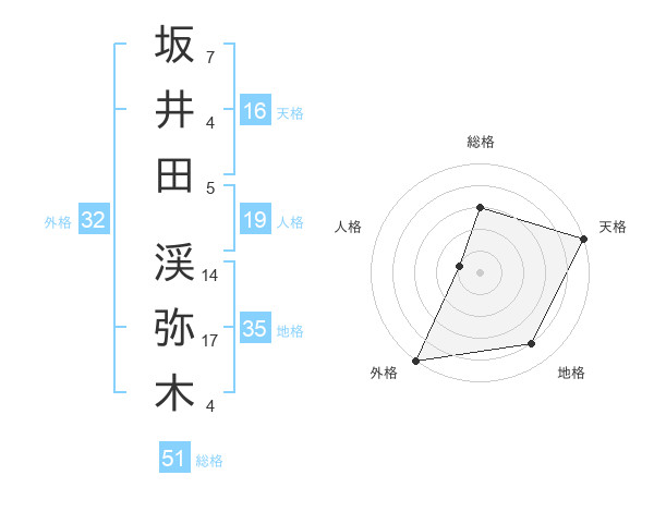 坂井田 渓弥木さんを姓名の画数から五運を鑑定