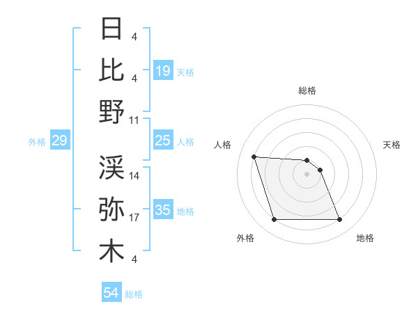 日比野 渓弥木さんを姓名の画数から五運を鑑定