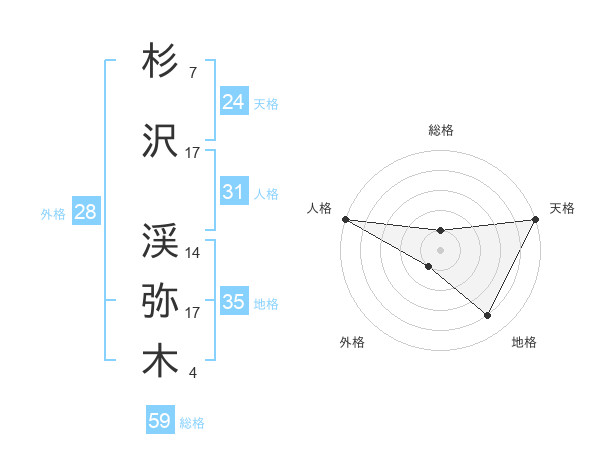 杉沢 渓弥木さんを姓名の画数から五運を鑑定