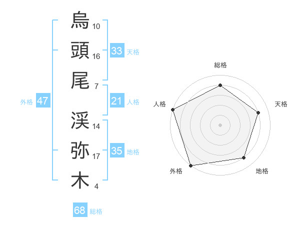烏頭尾 渓弥木さんの外格は47画の5点!