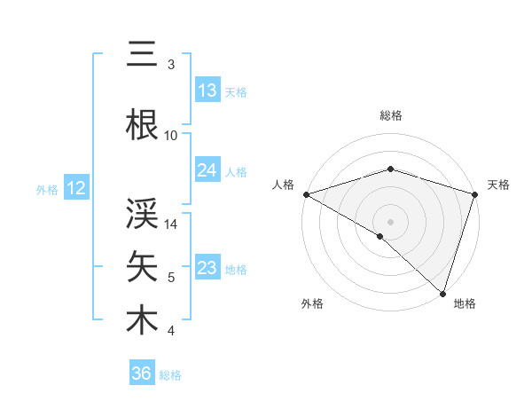 三根 渓矢木さんの天格は13画の5点