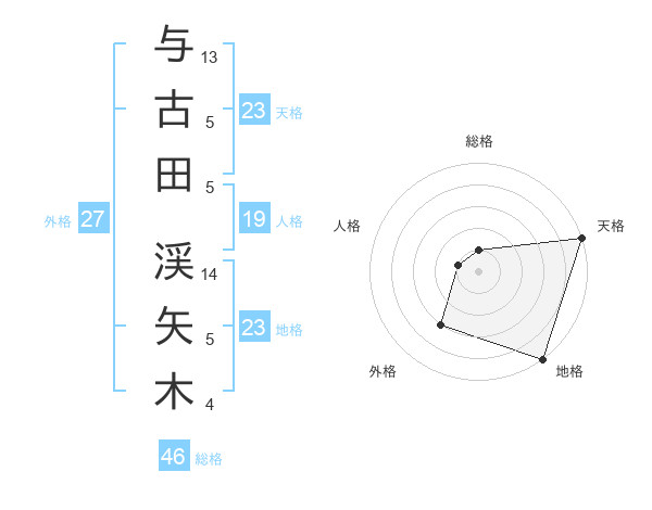 与古田 渓矢木さんを姓名の画数から五運を鑑定