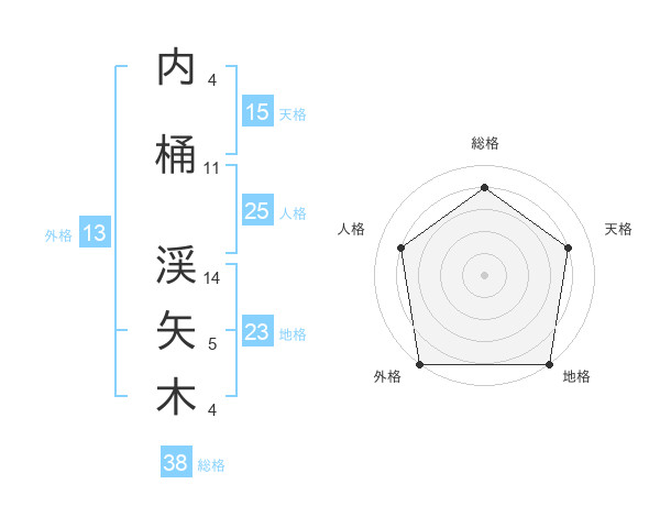 内桶 渓矢木さんを姓名の画数から五運を鑑定