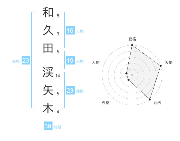 和久田 渓矢木さんの総格は39画の5点!