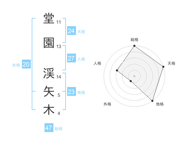 堂園 渓矢木さんを姓名の画数から五運を鑑定