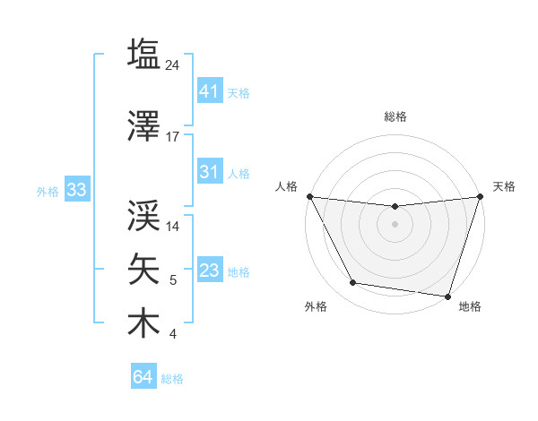塩澤 渓矢木さんの総格は64画の1点