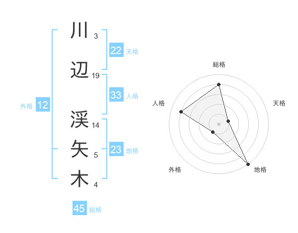 川辺 渓矢木さんを姓名の画数から五運を鑑定