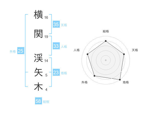 横関 渓矢木さんを姓名の画数から五運を鑑定