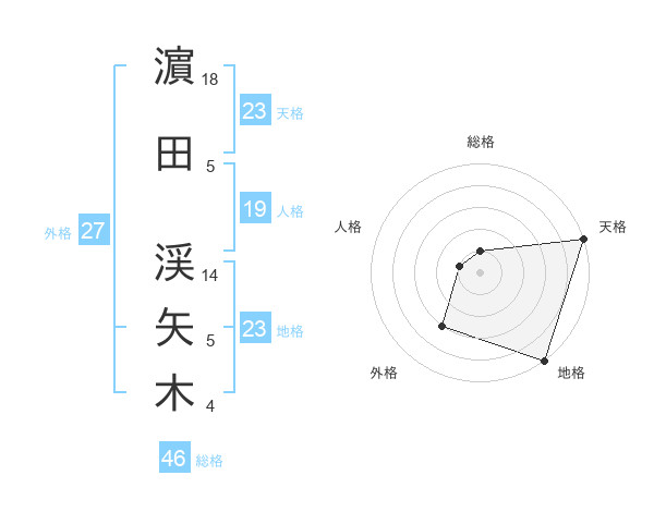 濵田 渓矢木さんの地格は23画の5点