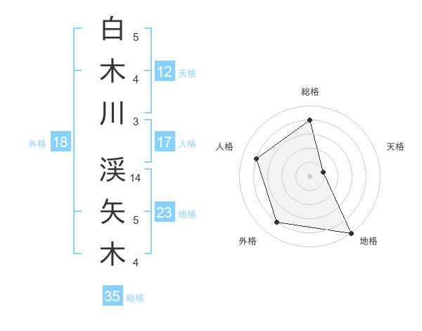 白木川 渓矢木さんを姓名の画数から五運を鑑定