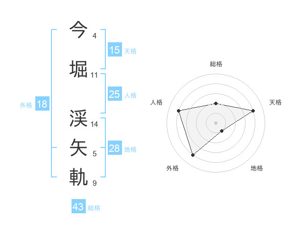 今堀 渓矢軌さんを姓名の画数から五運を鑑定