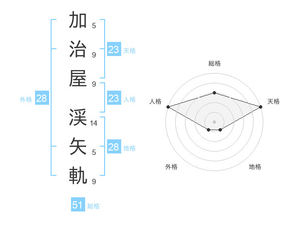 加治屋 渓矢軌さんの総格は51画の3点!