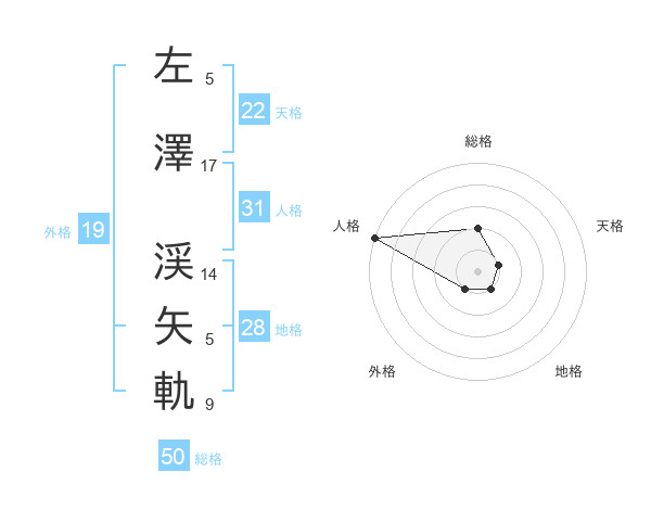 左澤 渓矢軌さんの総格は50画の2点!