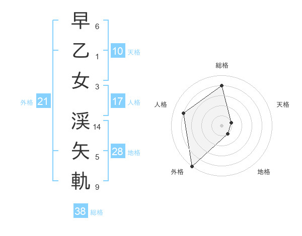 早乙女 渓矢軌さんを姓名の画数から五運を鑑定