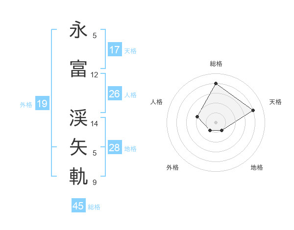 永富 渓矢軌さんを姓名の画数から五運を鑑定