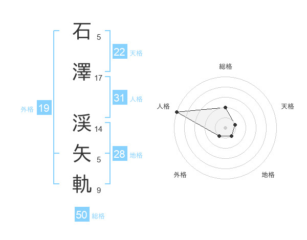 石澤 渓矢軌さんを姓名の画数から五運を鑑定