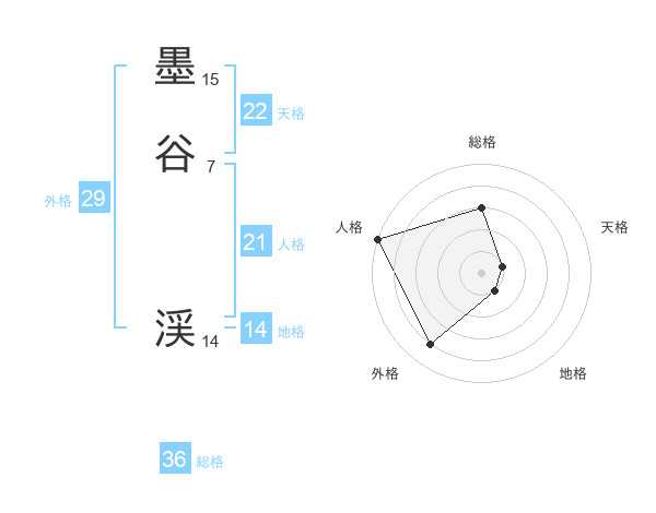 墨谷 渓さんを姓名の画数から五運を鑑定