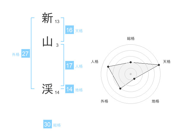 新山 渓さんを姓名の画数から五運を鑑定