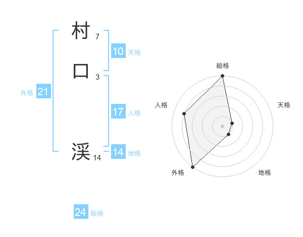 村口 渓さんの総格は24画の5点!