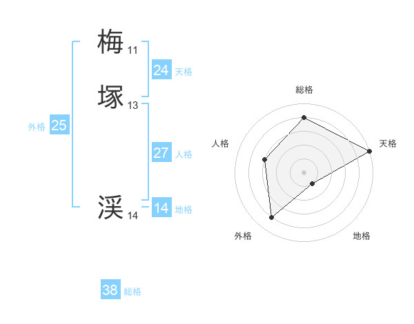 梅塚 渓さんの総格は38画の4点!