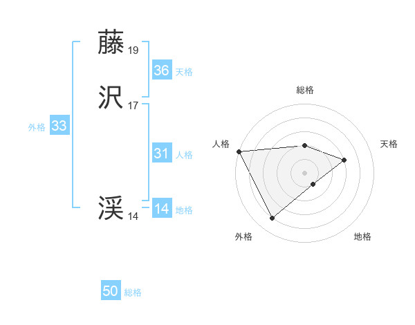 藤沢 渓さんの総格は50画の2点!
