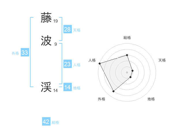 藤波 渓さんの総格は42画の3点!