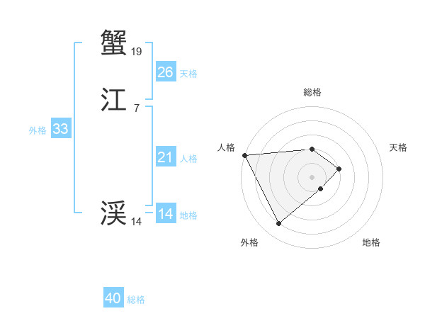 蟹江 渓さんの総格は40画の2点!