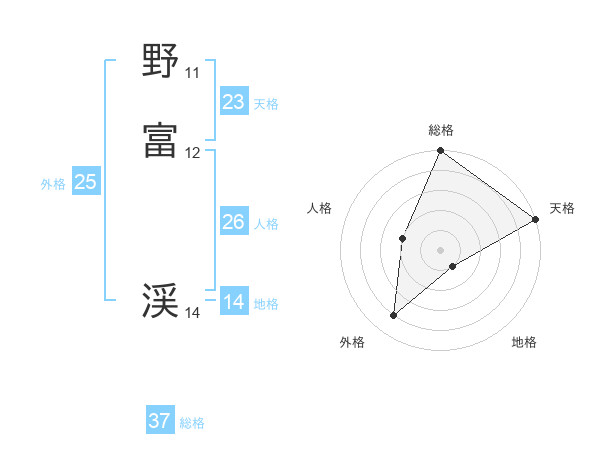 野富 渓さんの総格は37画の5点!