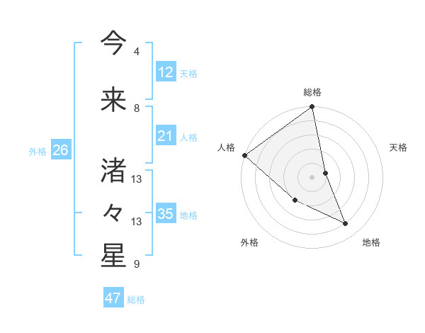 今来 渚々星さんの総格は47画の5点!