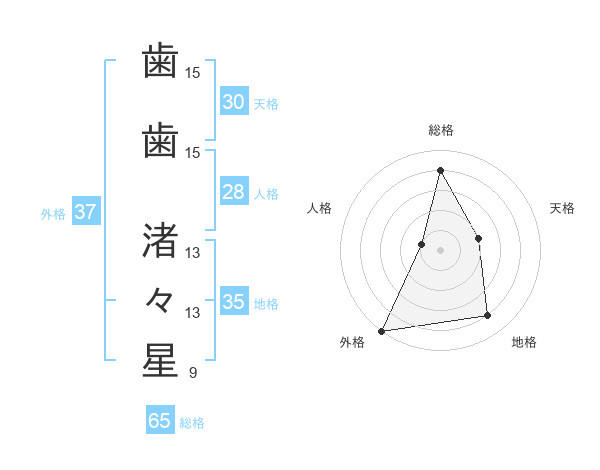 歯歯 渚々星さんの総格は65画の4点!