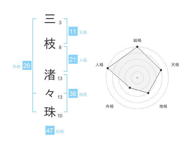 三枝 渚々珠さんを姓名の画数から五運を鑑定