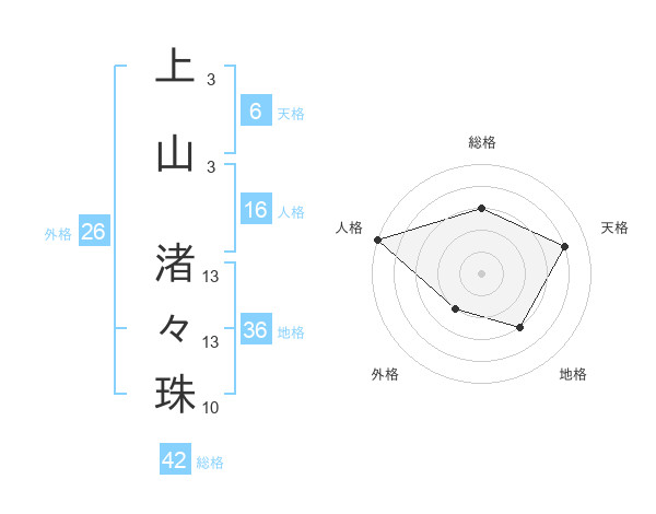 上山 渚々珠さんを姓名の画数から五運を鑑定