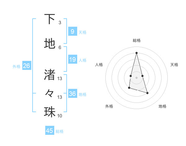 下地 渚々珠さんを姓名の画数から五運を鑑定