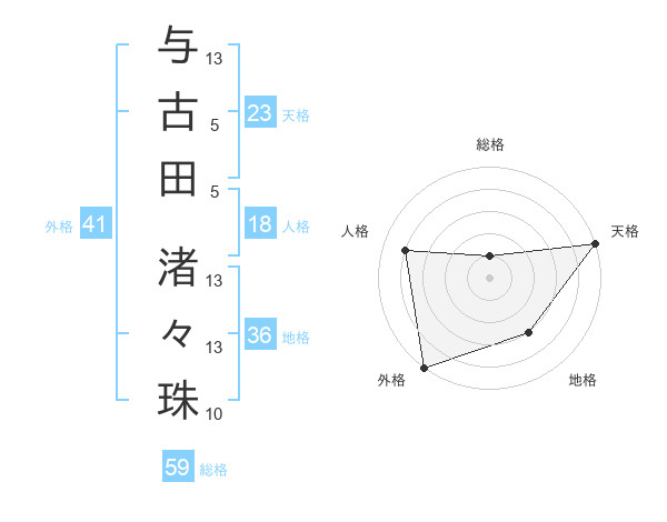 与古田 渚々珠さんの総格は59画の1点