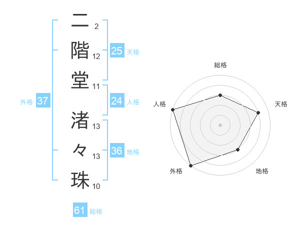 二階堂 渚々珠さんの外格は37画の5点