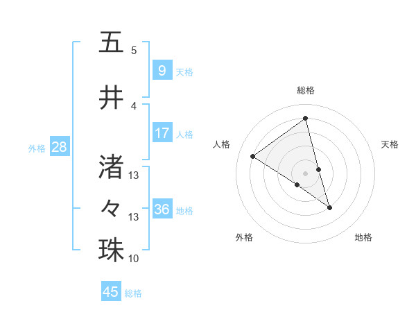 五井 渚々珠さんの総格は45画の4点!