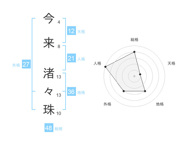 今来 渚々珠さんを姓名の画数から五運を鑑定