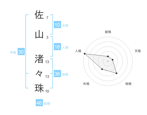 佐山 渚々珠さんを姓名の画数から五運を鑑定